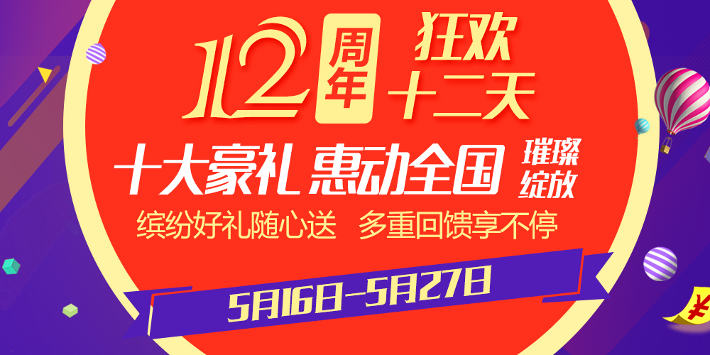狂歡12天!十大超級(jí)福利!港盛12周年慶玩大了!